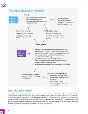 roads, community water systems, etc. While these still form a significant part of JSIF’s menu, there has been an evolution towards